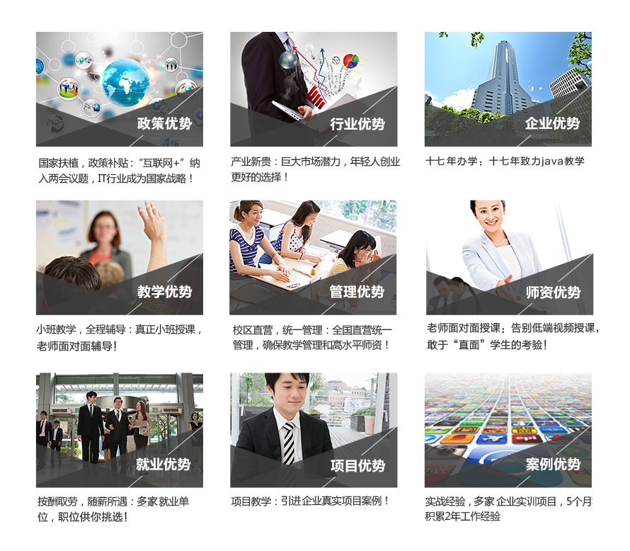 | 5 | 商城网站实战 | 综合运用HTML5/CSS3技术,能够独立制作出类似于淘宝的企业级电子商务网站站点。页面美观大方整洁规范。通过实战,对HTML5/CSS3前端UI技术融会贯通。学会各种技术技能的实际综合应用。熟练使用技术解决网站制作过程中各种现实问题和需求。 |